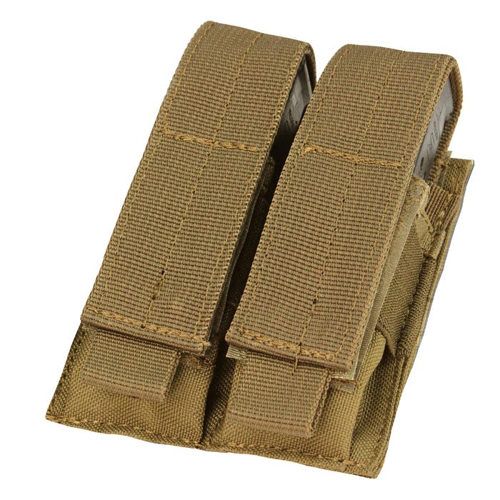 The Condor Outdoor Double Pistol Magazine Pouch features a universal design, to fit practically any pistol magazines. Essential elastic retention and the adjustable top hook-and-loop flap closure securely keep the magazines in place. The flap closures can also be tucked away and be used in the open-top orientation. The Condor Outdoor Pistol Magazine pouch provides optimal storage for most pistol magazines. It can also be used to store folding knives, multi-tools, flashlights, and other small essentials.